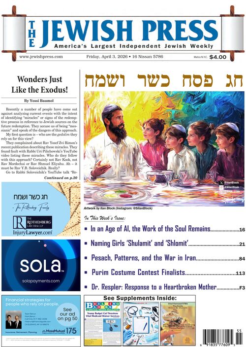 Home In Print The eEdition e-Edition: April 3, 2026 In PrintThe eEdition e-Edition: April 3, 2026 By Jewish Press Staff - April 1, 2026 0 Share on Facebook Tweet on Twitter tweet Photo Credit: Jewish Press Click on the image below to view a full-page version. The new issue will appear every Friday morning. Advertisement Share this article on WhatsApp:Advertisement
