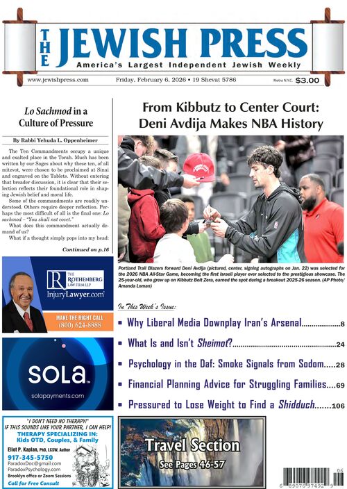 Home In Print The eEdition e-Edition: February 6, 2026 In PrintThe eEdition e-Edition: February 6, 2026 By Jewish Press Staff - February 6, 2026 0 Share on Facebook Tweet on Twitter tweet Photo Credit: Jewish Press Click on the image below to view a full-page version. The new issue will appear every Friday morning. Advertisement Share this article on WhatsApp:Advertisement