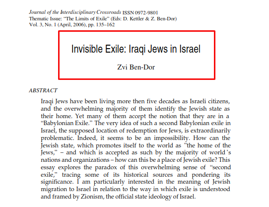 - Instead of “Invisible Exile: Iraqi Jews in Exile” — the actual name of the article is “Invisible Exile: Iraqi Jews in Israel“