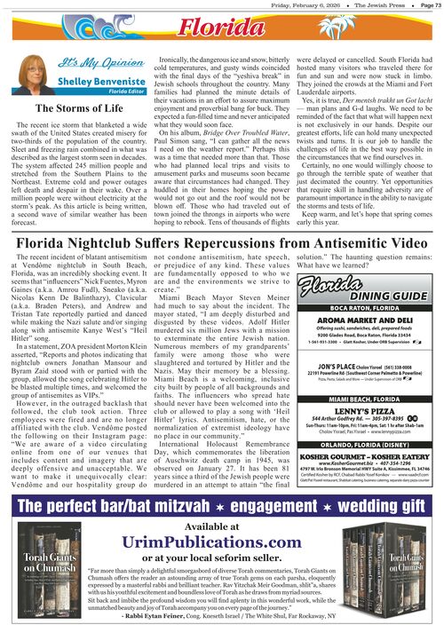 Home Sections Features South Florida – February 6, 2026 SectionsFeaturesCommunitySouth Florida South Florida – February 6, 2026 By Shelley Benveniste - February 6, 2026 0 Share on Facebook Tweet on Twitter tweet Photo Credit: Click on the image below to view a full-page version. Advertisement Share this article on WhatsApp:Advertisement